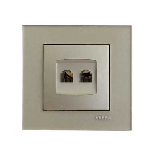 پریز تلفن دو سوکت (چهار خط) مدل کریستال کامل (قاب دور و میانه)